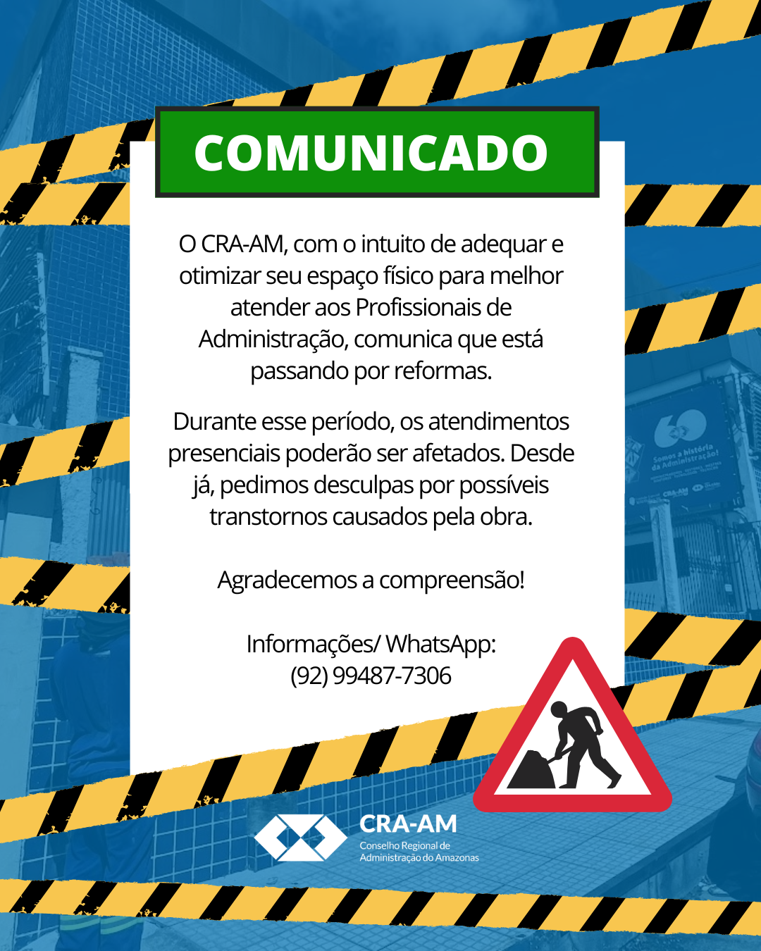 Últimas Notícias CRA-AM lança cartilha orientativa de fiscalização trazendo informações sobre atividades privativas, campos de atuação, além do papel do responsável técnico dentro das instituições O trabalho de fiscalização do CRA-AM é fundamental para garantir a qualidade e a ética no exercício da administração, protegendo ...Leia Mais CFA / Administração de condomínios: síndico morador não precisa de registro profissional Registro nos Conselhos Regionais de Administração é exigido apenas de síndicos profissionais e empresas especializadas em gestão condominial O crescimento ...Leia Mais Oficina – Gestão de Tempo: Como ganhar quatro horas no seu dia A gestão do tempo é uma habilidade essencial no mundo moderno, onde as demandas e responsabilidades parecem multiplicar a cada ...Leia Mais Aqui tem vantagem! – Sorteio de Bolsas de Estudo A Campanha de pagamento da Anuidade 2026 do Conselho Regional de Administração do Amazonas / CRA-AM está a todo vapor, ...Leia Mais Parceria CRA-AM / Profissional de Administração, transforme sua carreira. Neste mês de janeiro, o Manual de Perícias abre uma excelente oportunidade para profissionais que desejam ampliar sua atuação e ...Leia Mais CRA-AM disponibiliza calendário/planner edição 2026 aos Profissionais de Administração Mais um ano começou, e o tão esperado calendário/planner do CRA-AM edição 2026 já está disponível para os profissionais, que ...Leia Mais 1 2 3 … 18 › Institucional Calendário de Eventos Confira em breve novas atividades programadas Últimas Publicações Confira outras publicações