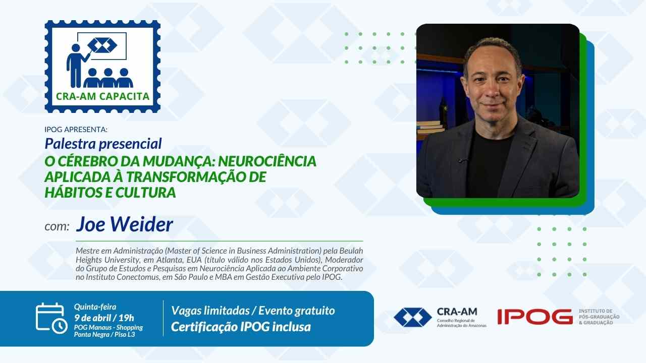 Últimas Notícias Palestra IPOG – O Cérebro da Mudança: Neurociência Aplicada à Transformação de Hábitos e Cultura O CRA-AM e o IPOG convidam os profissionais de Administração para mais uma atividade que integra o Programa CRA-AM CAPACITA, ...Leia Mais CFA lança Selo Azul da Administração para certificar qualidade do ensino superior O Conselho Federal de Administração (CFA) oficializou o lançamento do edital do Programa CFA IES Selo Azul da Administração. A ...Leia Mais Evento realizado na FIEAM contou com a presença de profissionais, acadêmicos e convidados, que acompanharam bate-papo sobre a liderança feminina no cenário tecnológico atual Roda de conversa e troca de experiências marcaram a 16ª edição do Encontro das Mulheres Profissionais de Administração do Amazonas, ...Leia Mais Seminário debaterá futuro das matrizes curriculares dos cursos de ADM no Brasil O Conselho Federal de Administração (CFA), em parceria com seus regionais (CRAs), realizará no dia 9 de abril, na sede ...Leia Mais Síndicos profissionais que exercem a administração nos condomínios como negócio com fins lucrativos são enquadrados em função administrativa e precisam de registro Nos últimos anos, denúncias de fraudes e desvio de recursos, frutos da má gestão em condomínios, dispararam em todo o ...Leia Mais Conselheiro Federal do Amazonas compôs comitiva do CFA e palestrou no evento realizado na Bolívia Representantes do CFA participaram, entre os dias 11 e 13 de março, do Congresso de Administração da Comunidade Andina de ...Leia Mais 1 2 3 … 20 › Institucional Calendário de Eventos 09 abr IV Seminário Nacional de Qualidade do Ensino de Administração 09 abr CRA-AM Capacita / Palestra “O Cérebro da Mudança: Neurociência Aplicada à Transformação de Hábitos e Cultura” 26 maio ERPA Norte 2026 / Boa Vista – RR Últimas Publicações Confira outras publicações