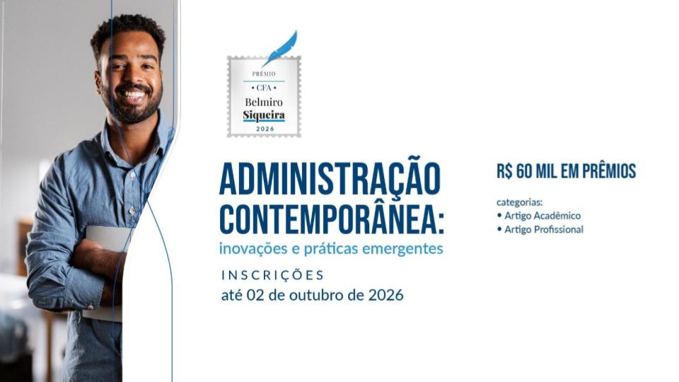 Últimas Notícias Prêmio Belmiro Siqueira está de volta e com inscrições abertas Estão abertas as inscrições para o Prêmio CFA Belmiro Siqueira de Administração, que podem ser realizadas até o dia 2 ...Leia Mais Iniciativa conta com o apoio institucional do CRA-AM e tem como objetivo estimular o empreendedorismo inovador no Amazonas A Fundação de Amparo à Pesquisa do Estado do Amazonas (Fapeam) divulgou no dia 13 de abril, o resultado final ...Leia Mais Aumente sua visibilidade e alcance com a plataforma de parcerias ADM+! Não perca essa oportunidade de se conectar com novos clientes e ampliar sua rede de contatos, seja uma empresa parceira ...Leia Mais Eleições 2026 do Sistema CFA/CRAs vêm aí. Saiba mais informações O ano de 2026 tem uma programação especial em relação aos períodos anteriores. Neste ano, acontecem as eleições do Sistema ...Leia Mais Evento proporcionou dois dias de muito aprendizado para profissionais de Administração, Contabilidade e Economia A Superintendência do Desenvolvimento da Amazônia - SUDAM, em parceria com os Conselhos Profissionais de Administração, Contabilidade e Economia, realizou ...Leia Mais Parceria CRA-AM / Profissional de Administração, transforme sua carreira. Neste mês de janeiro, o Manual de Perícias abre uma excelente oportunidade para profissionais que desejam ampliar sua atuação e ...Leia Mais 1 2 3 … 21 › Institucional Calendário de Eventos 26 maio ERPA Norte 2026 / Boa Vista – RR Últimas Publicações Confira outras publicações